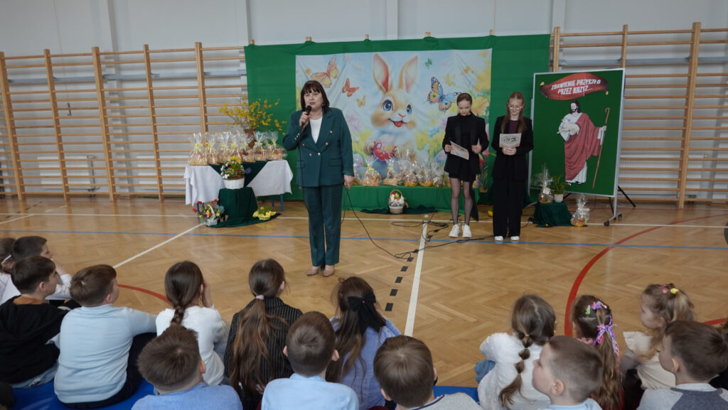 Nie zabrakło również serdecznych życzeń skierowanych do całej społeczności szkolnej przez Panią Dyrektor, Radę Rodziców oraz Samorząd Uczniowski. W swoich wystąpieniach podkreślono znaczenie wspólnoty, wzajemnej życzliwości oraz nadziei, które towarzyszą Świętom Wielkanocnym.