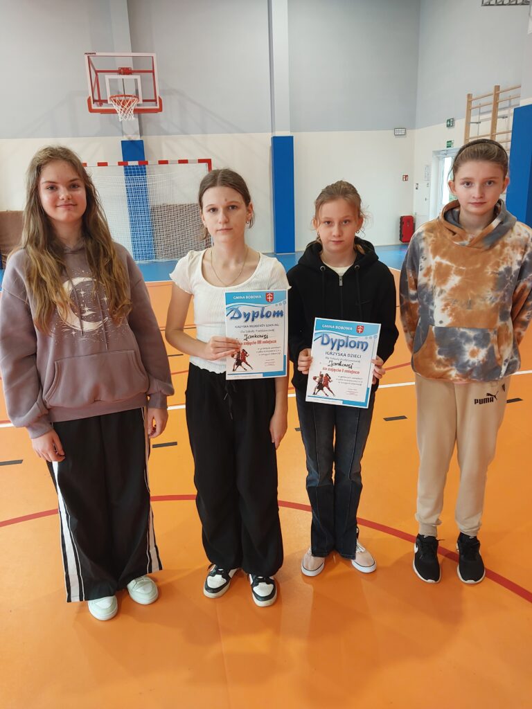 I miejsce w turnieju. Ich gra była pełna zaangażowania, zespołowej współpracy i sportowej pasji. Drużyna dziewcząt starszych również pokazała się z bardzo dobrej strony, zajmując III miejsce po zaciętej rywalizacji z pozostałymi szkołami.