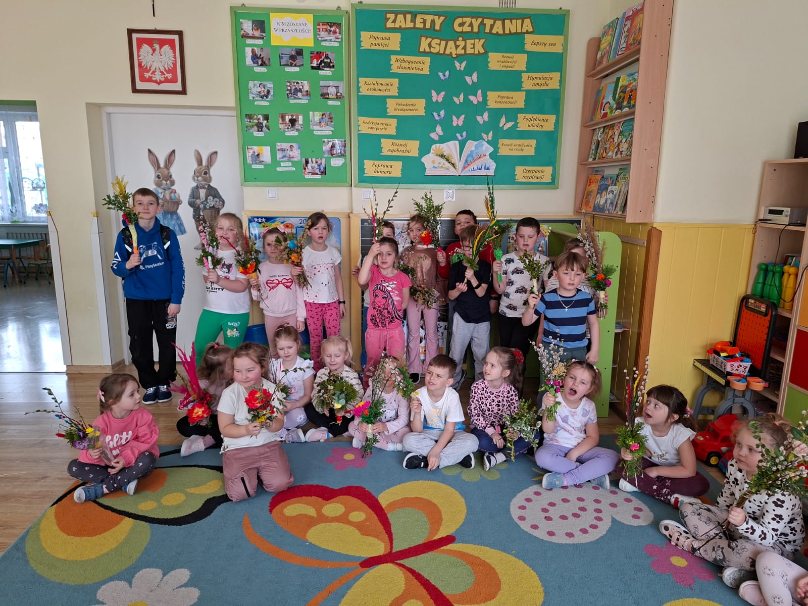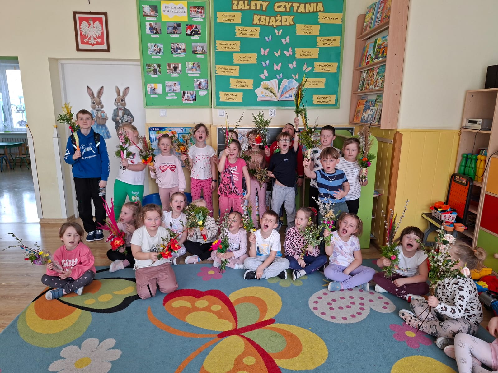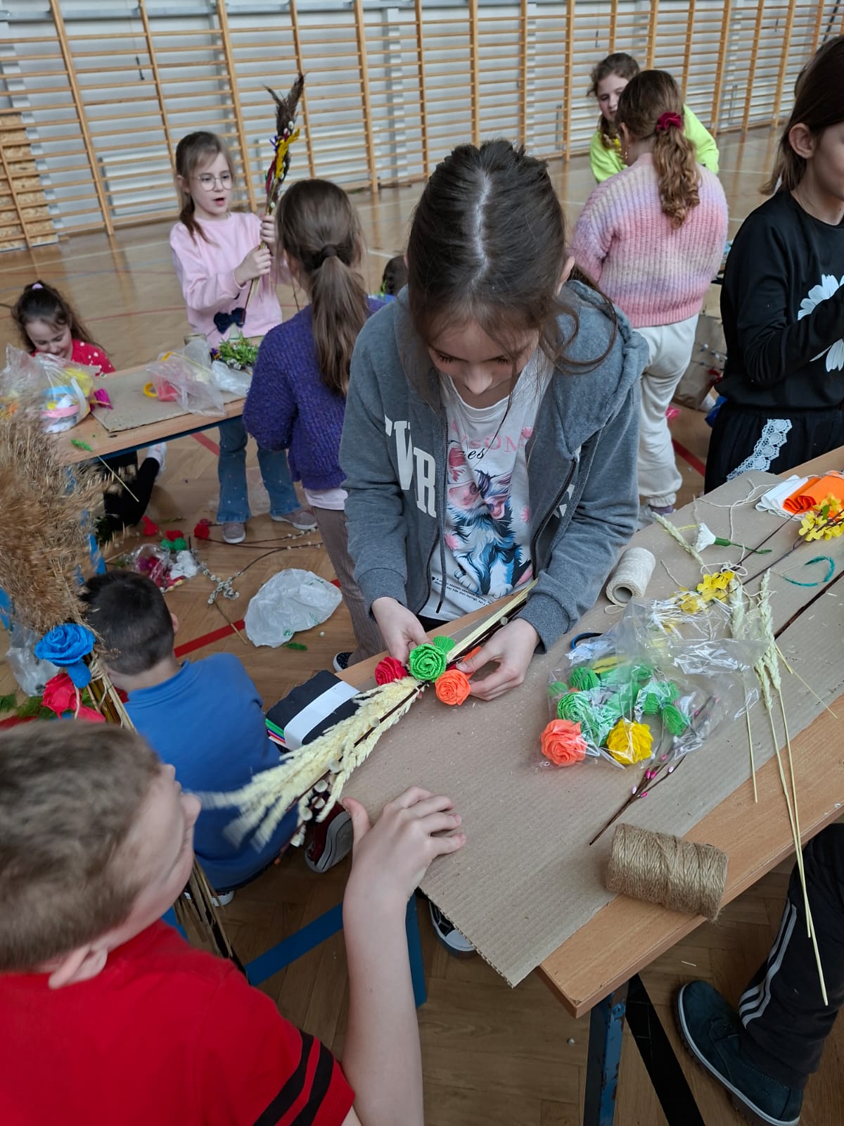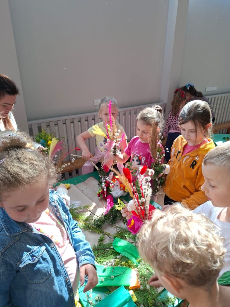 z najważniejszych elementów zdobiących palmy wielkanocne. Praca ta sprawiła uczestnikom wiele radości, a jednocześnie była doskonałą okazją do rozwijania zdolności manualnych, wyobraźni oraz poczucia estetyki.
