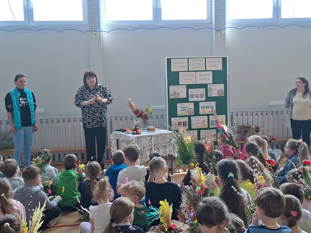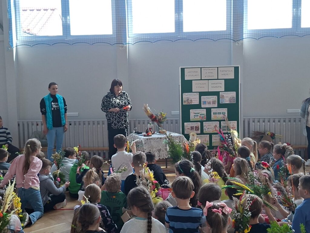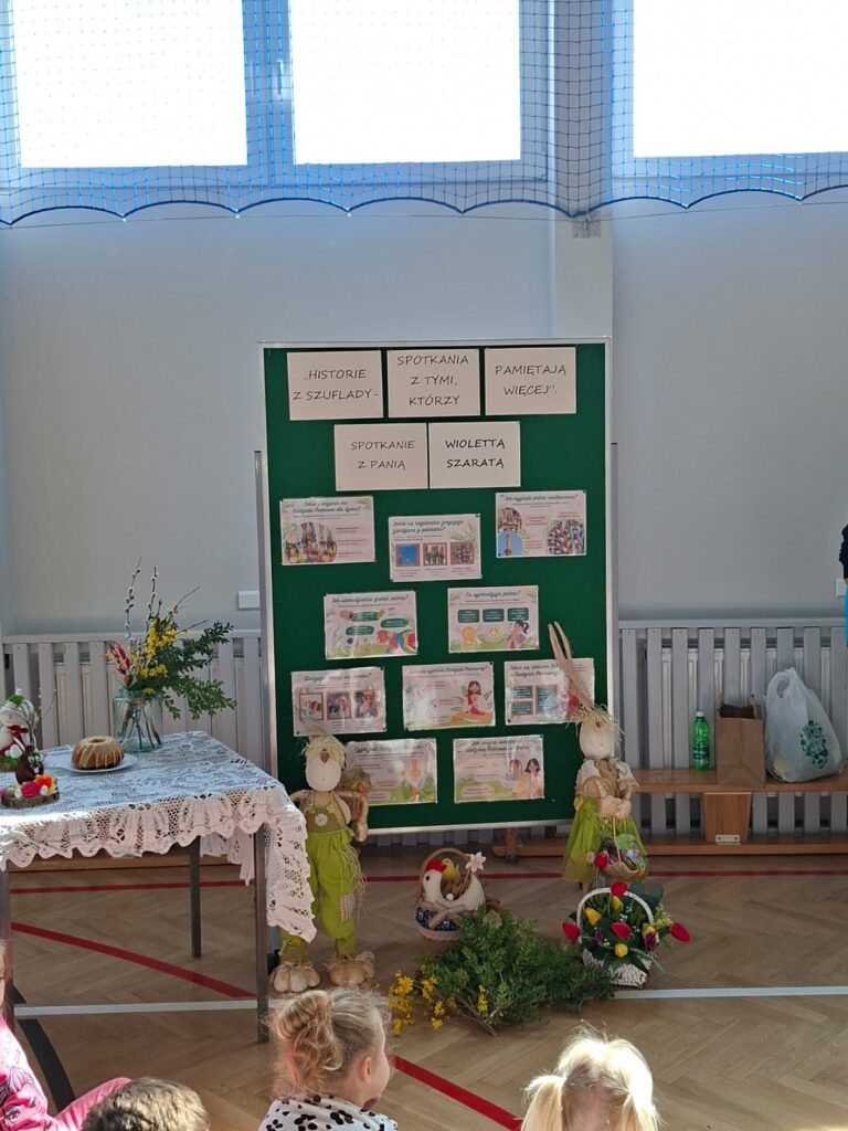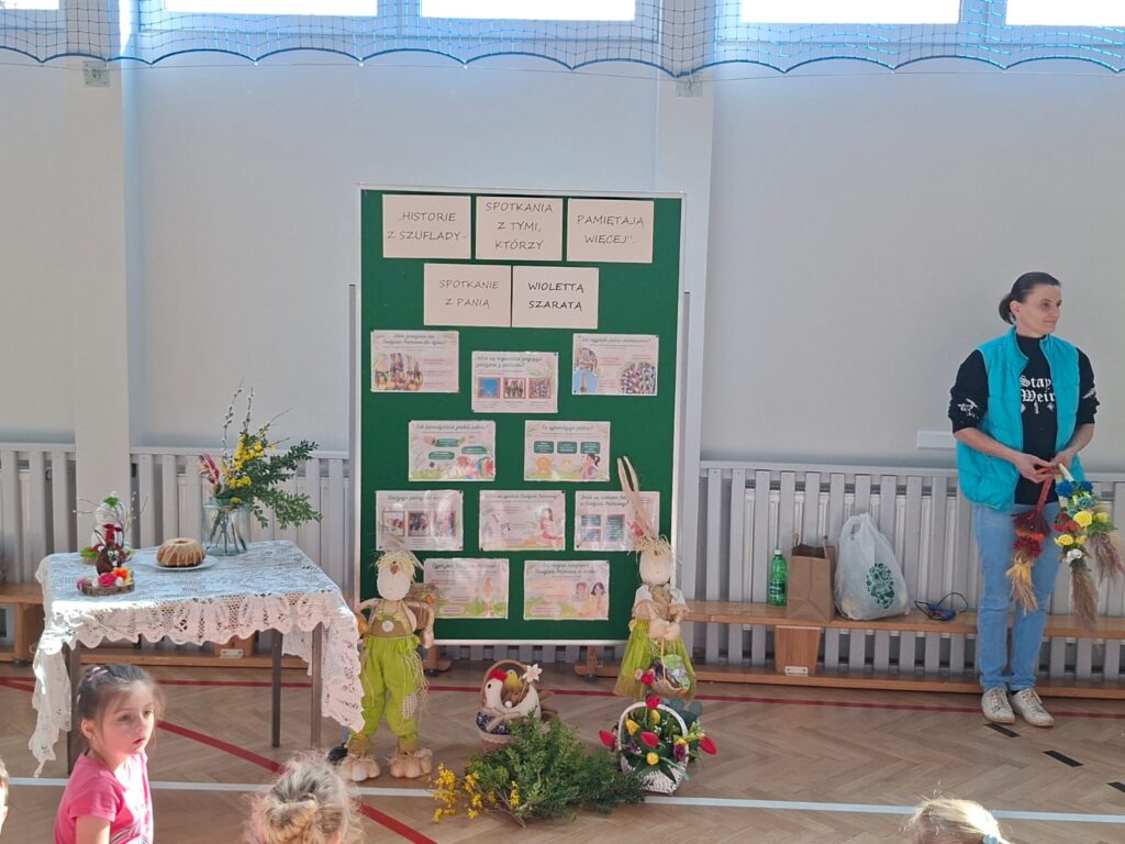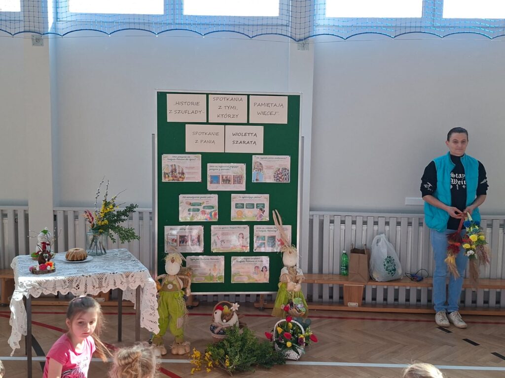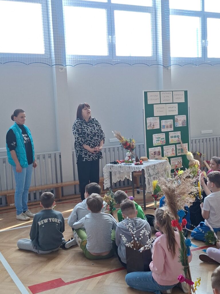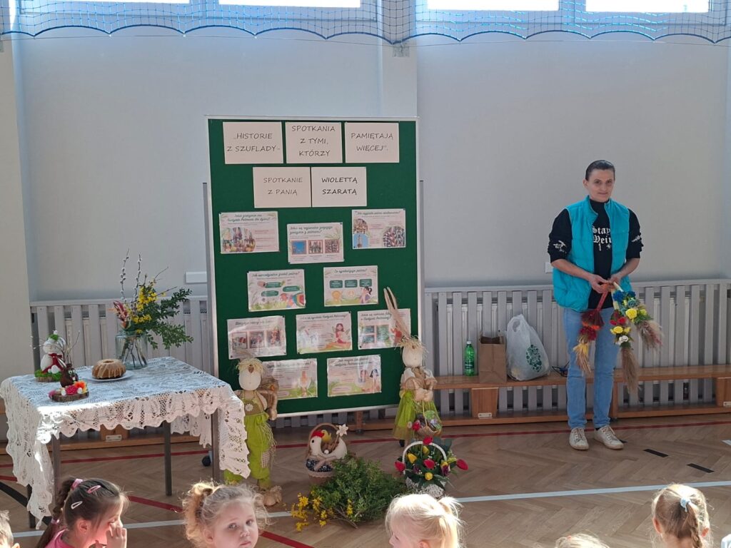 W dniu 25 marca 2026 r. odbyło się kolejne, niezwykle wartościowe spotkanie w ramach realizowanej w naszej szkole innowacji pedagogicznej „Historie z szuflady, spotkania z tymi, którzy pamiętają więcej”. W wydarzeniu uczestniczyły dzieci z oddziału przedszkolnego oraz uczniowie klas I–III, którzy po raz kolejny mieli okazję spotkać się z osobą posiadającą wyjątkową wiedzę i pasję do dzielenia się lokalnymi tradycjami.