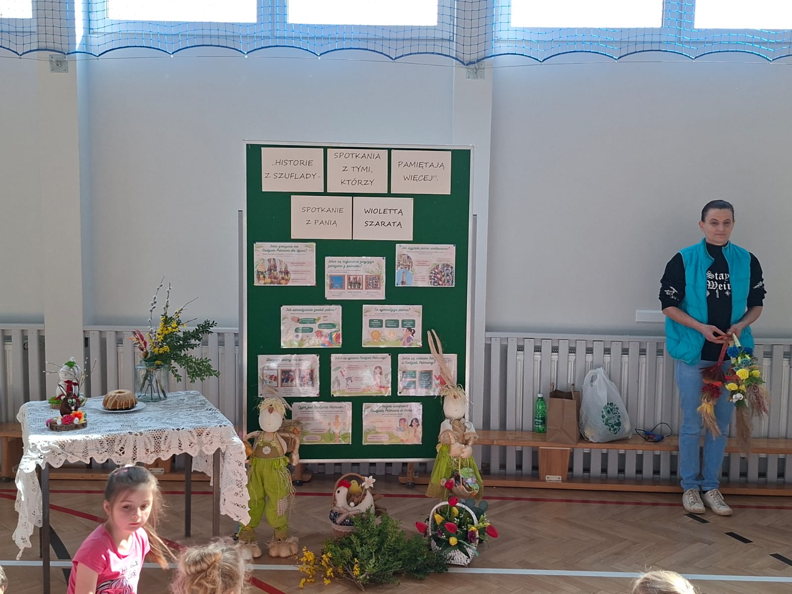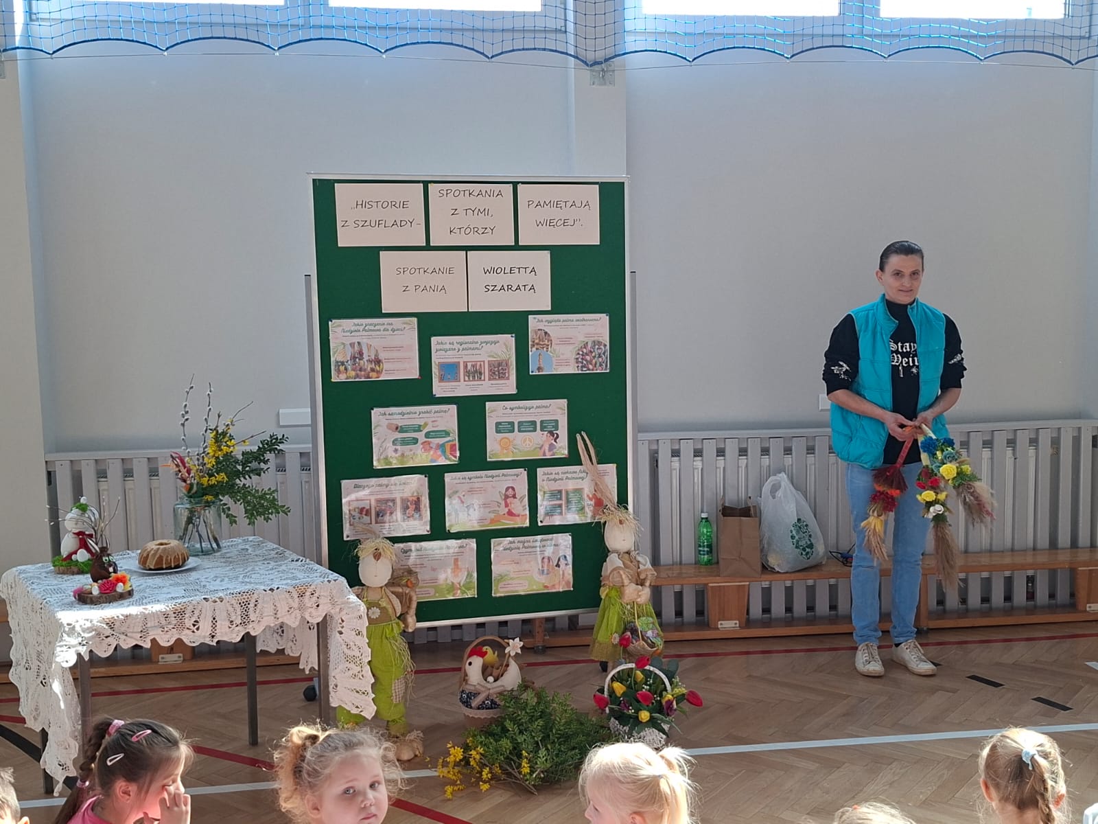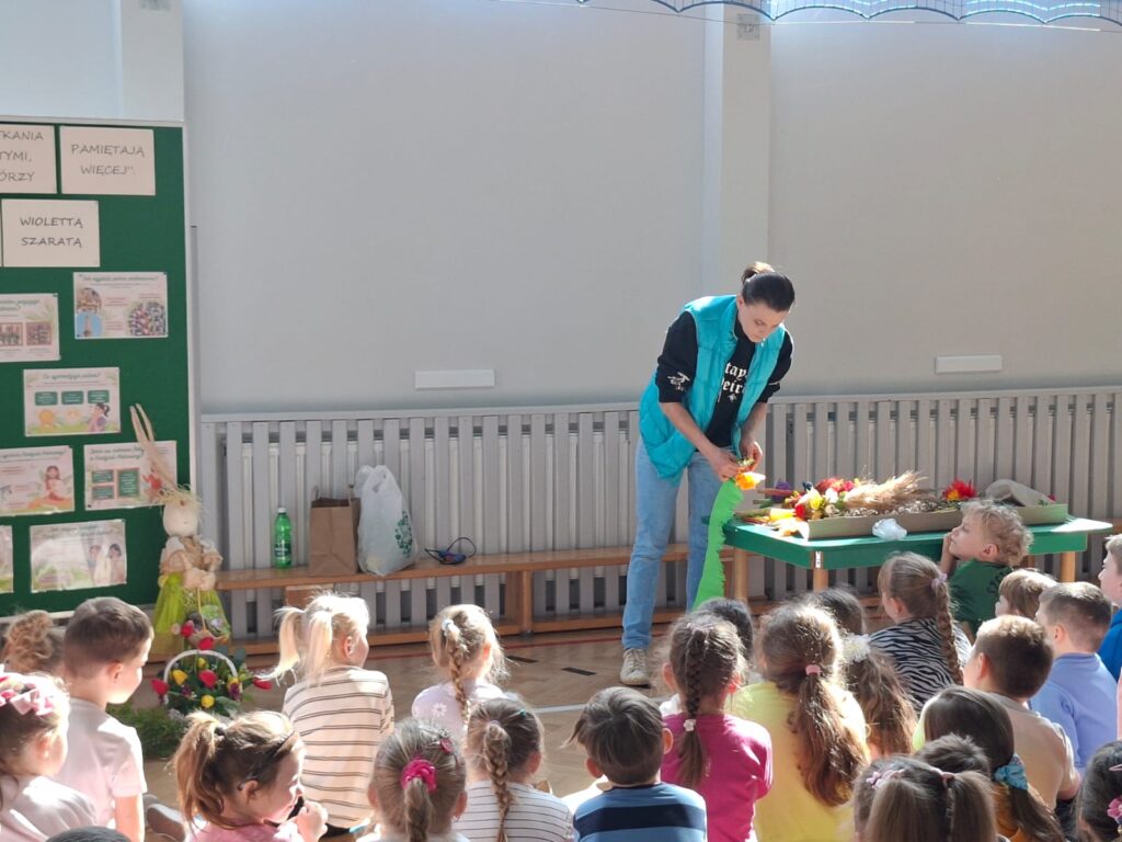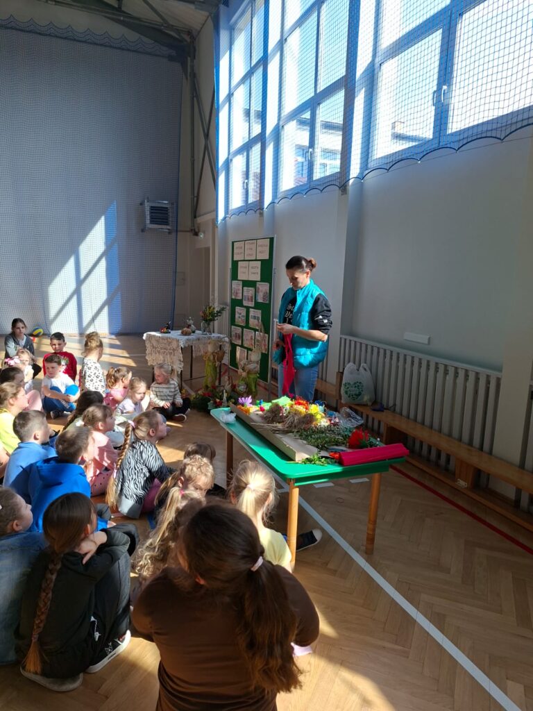 Gościem spotkania była pani Wioletta Szarata, która wprowadziła dzieci w tematykę zbliżającej się Niedzieli Palmowej. Podczas prelekcji opowiedziała o znaczeniu tego święta w tradycji chrześcijańskiej, przybliżając jego symbolikę oraz zwyczaje związane z jego obchodami. Szczególną uwagę poświęciła lokalnym tradycjom kultywowanym w Jankowej, dzięki czemu dzieci mogły lepiej poznać dziedzictwo swojego regionu i zrozumieć, jak ważne jest jego pielęgnowanie. Uczestnicy spotkania dowiedzieli się, jak dawniej przygotowywano palmy wielkanocne, jakie materiały wykorzystywano oraz jakie znaczenie przypisywano poszczególnym elementom dekoracyjnym.