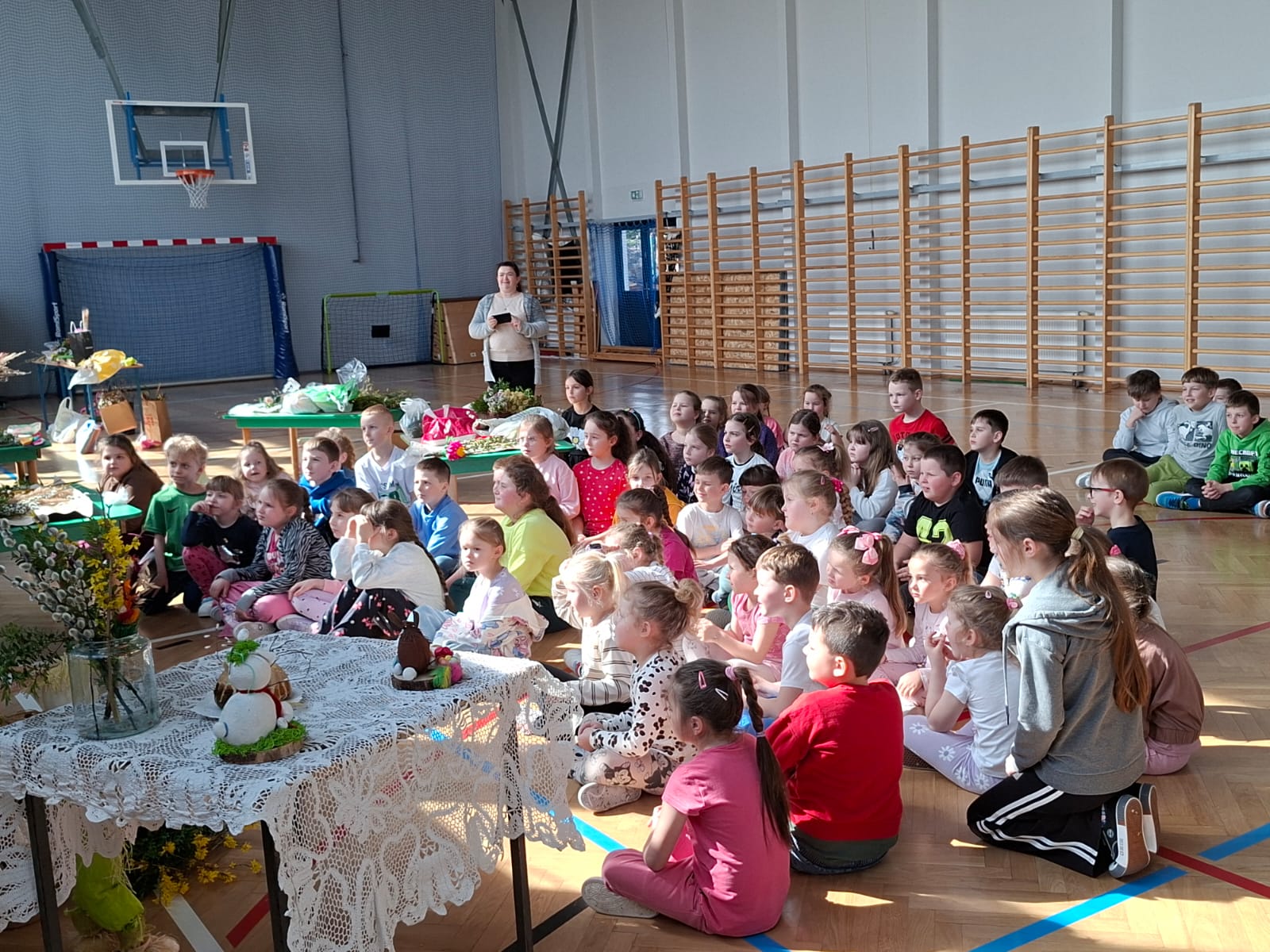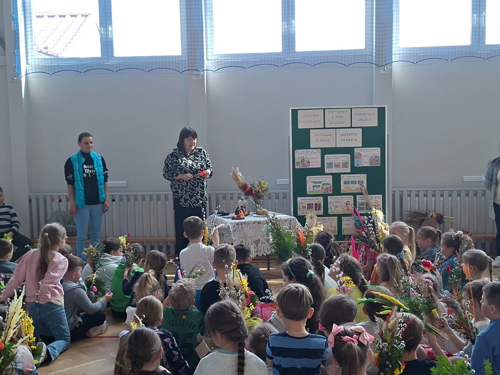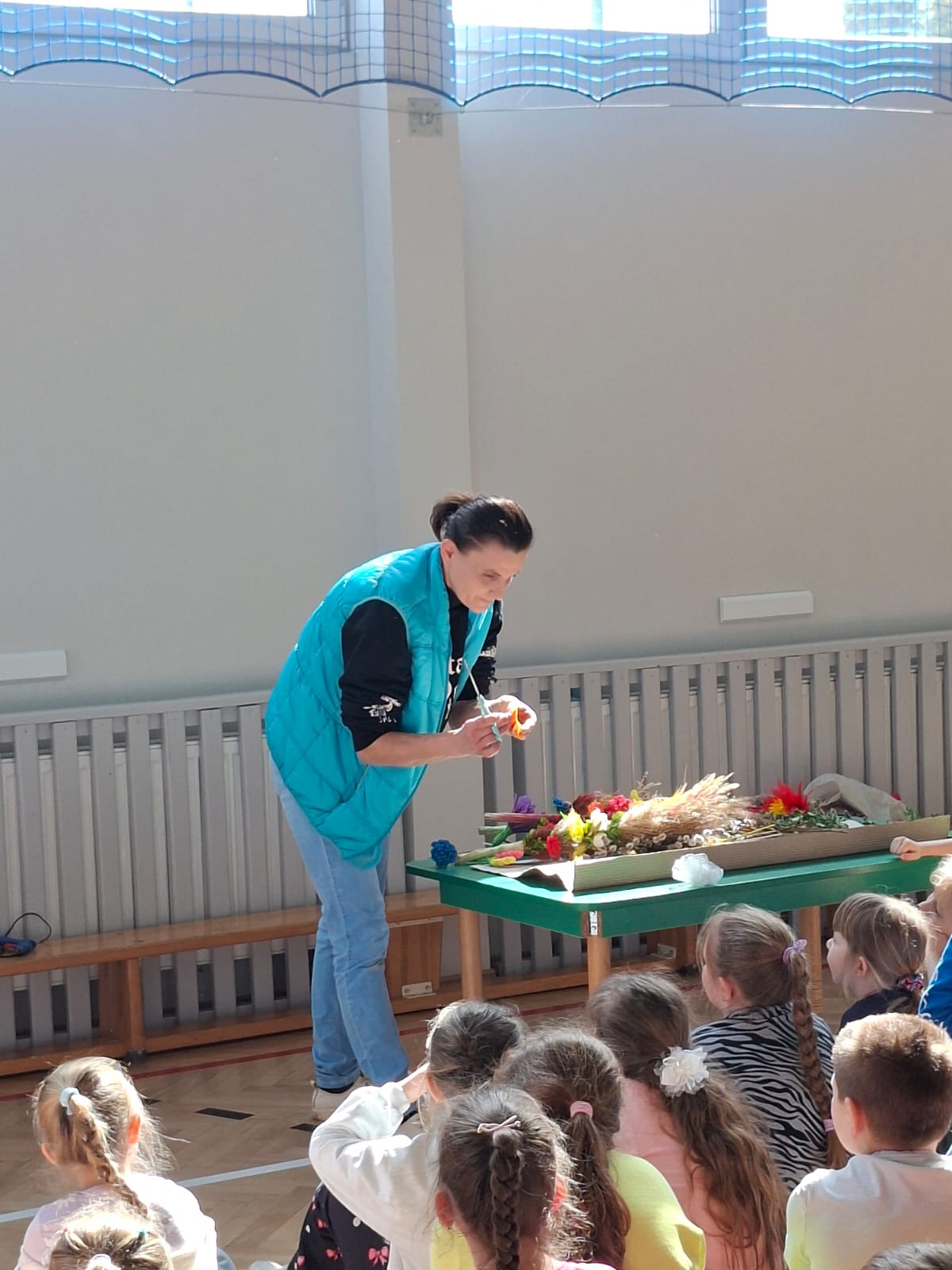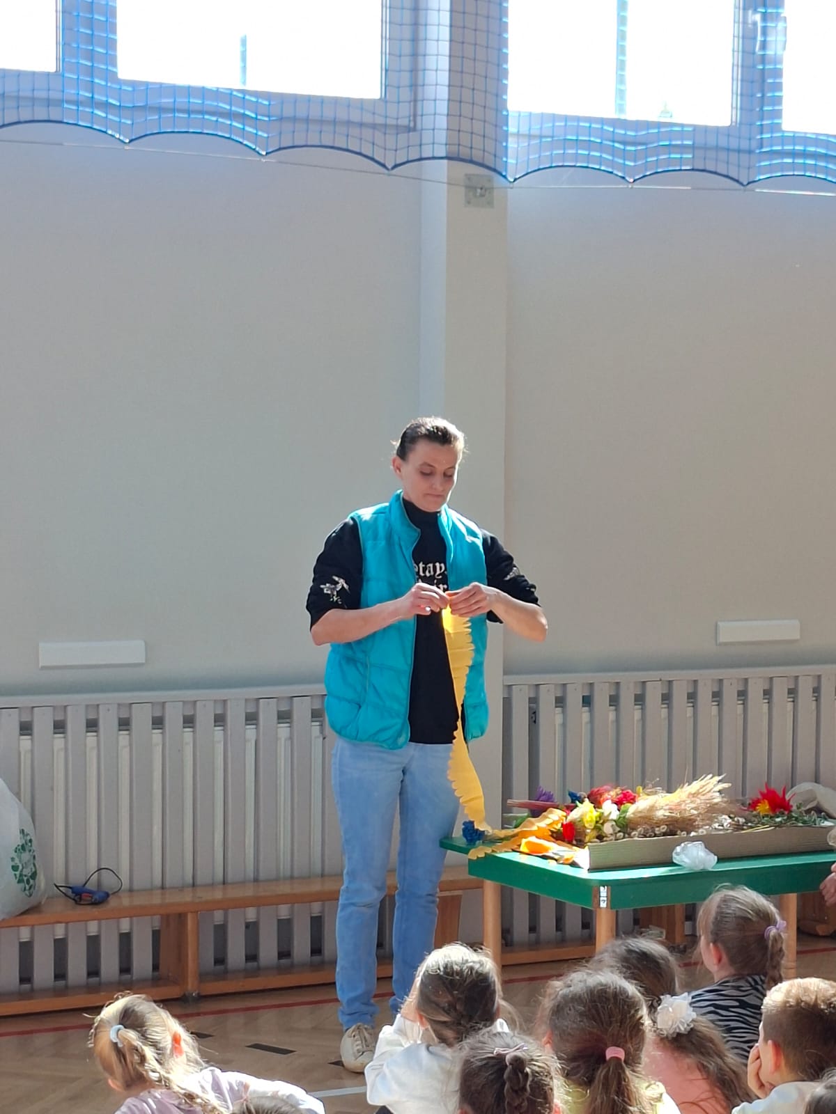 Gościem spotkania była pani Wioletta Szarata, która wprowadziła dzieci w tematykę zbliżającej się Niedzieli Palmowej. Podczas prelekcji opowiedziała o znaczeniu tego święta w tradycji chrześcijańskiej, przybliżając jego symbolikę oraz zwyczaje związane z jego obchodami. Szczególną uwagę poświęciła lokalnym tradycjom kultywowanym w Jankowej, dzięki czemu dzieci mogły lepiej poznać dziedzictwo swojego regionu i zrozumieć, jak ważne jest jego pielęgnowanie. Uczestnicy spotkania dowiedzieli się, jak dawniej przygotowywano palmy wielkanocne, jakie materiały wykorzystywano oraz jakie znaczenie przypisywano poszczególnym elementom dekoracyjnym.