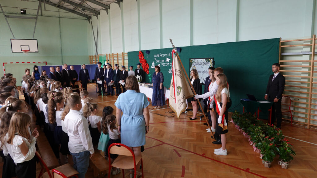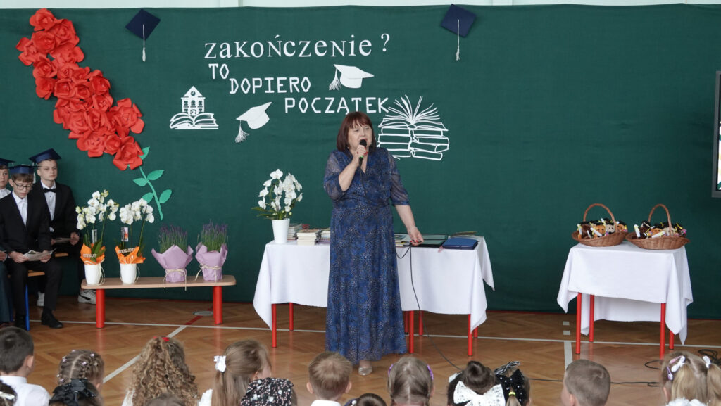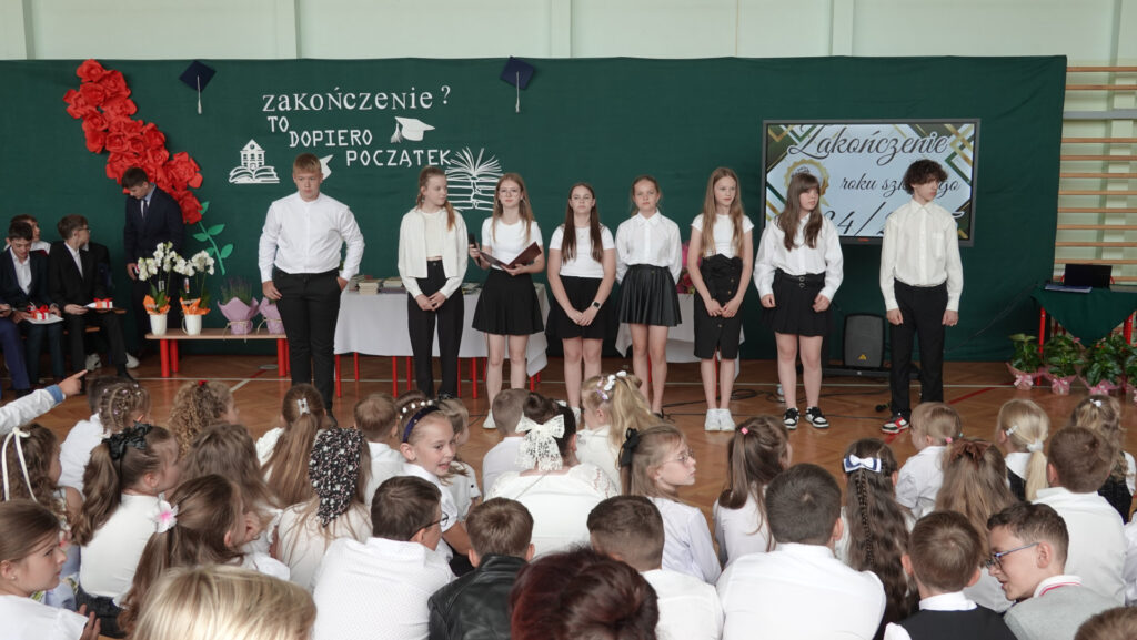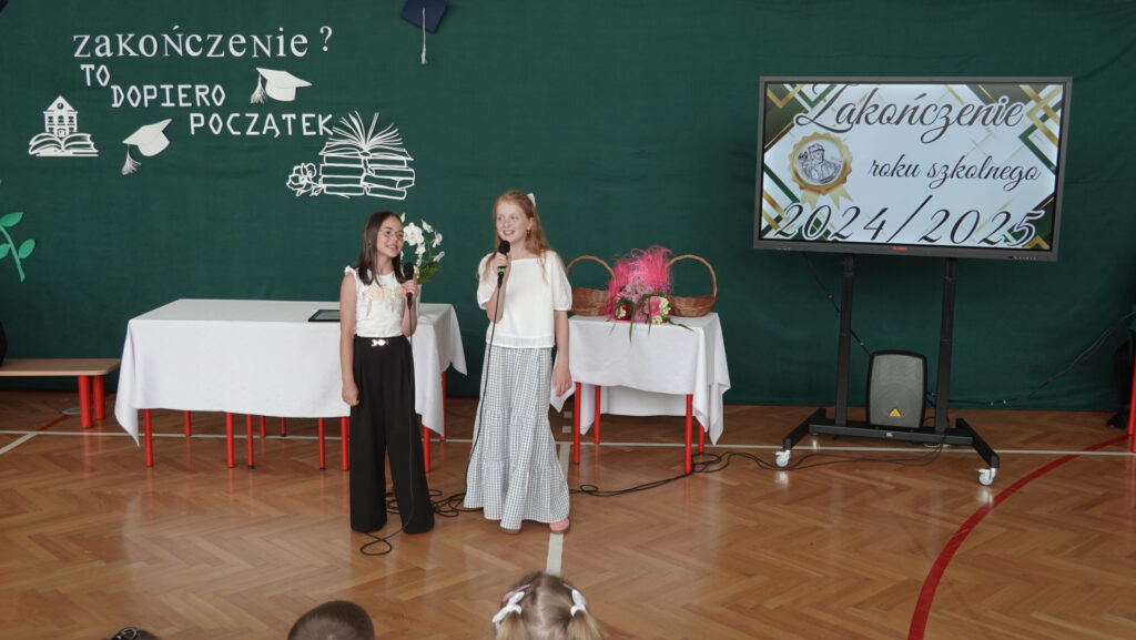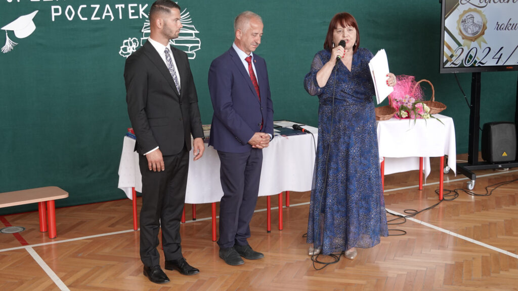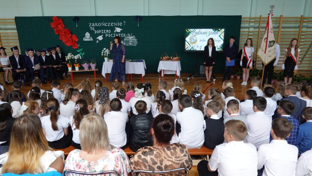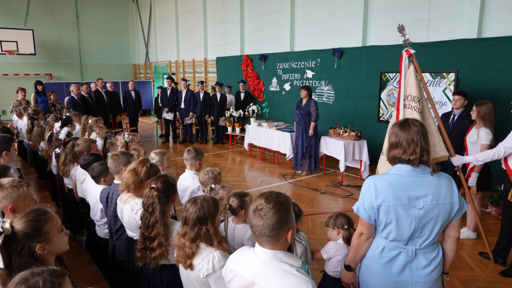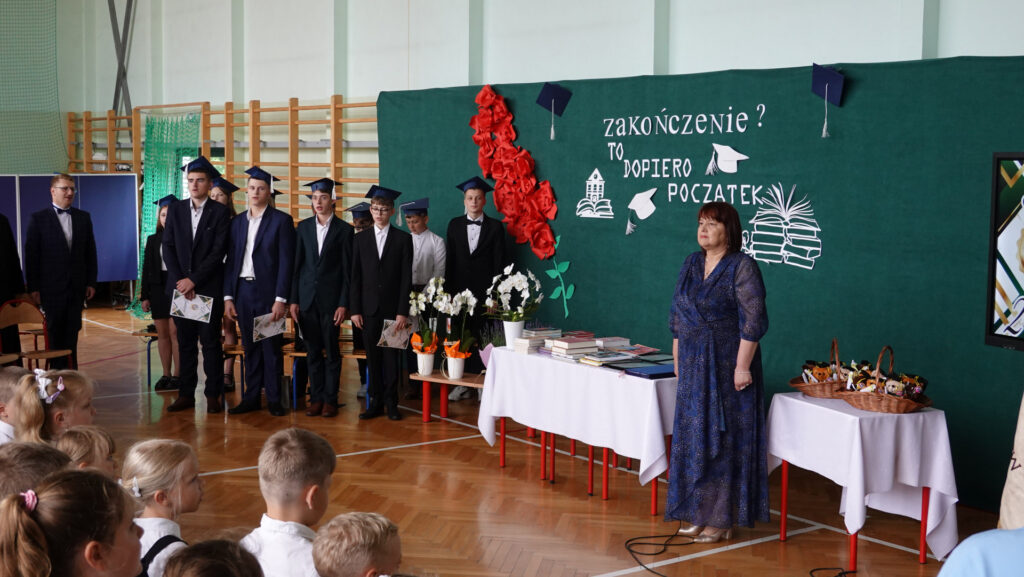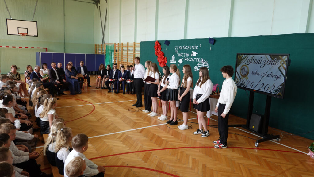 27 czerwca 2025 roku odbyła się uroczystość zakończenia roku szkolnego, która zgromadziła uczniów, nauczycieli, rodziców oraz wyjątkowych gości. Całe wydarzenie rozpoczęła Pani Dyrektor Alicja Rodak, która w serdecznych słowach przywitała zaproszonych gości oraz całą społeczność szkolną, podkreślając wagę wspólnego świętowania zakończenia kolejnego etapu edukacyjnego.