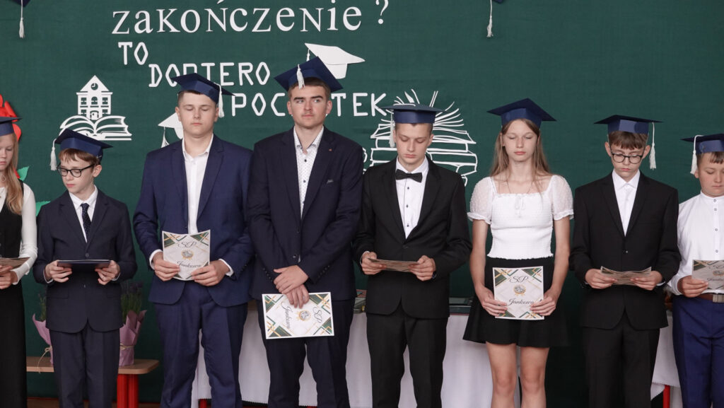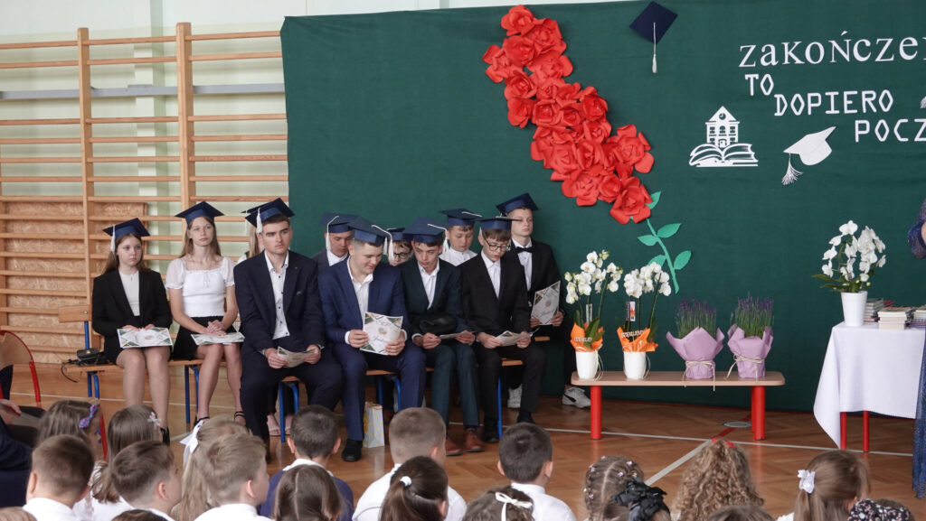 Uroczystość zakończyła się wspólnym zdjęciem, uściskami i symbolicznym zamknięciem ważnego rozdziału. Rok szkolny 2024/2025 dobiegł końca, pozostawiając po sobie mnóstwo wspomnień, emocji i wdzięczności.