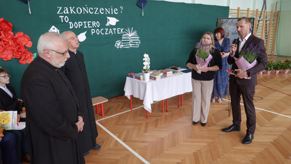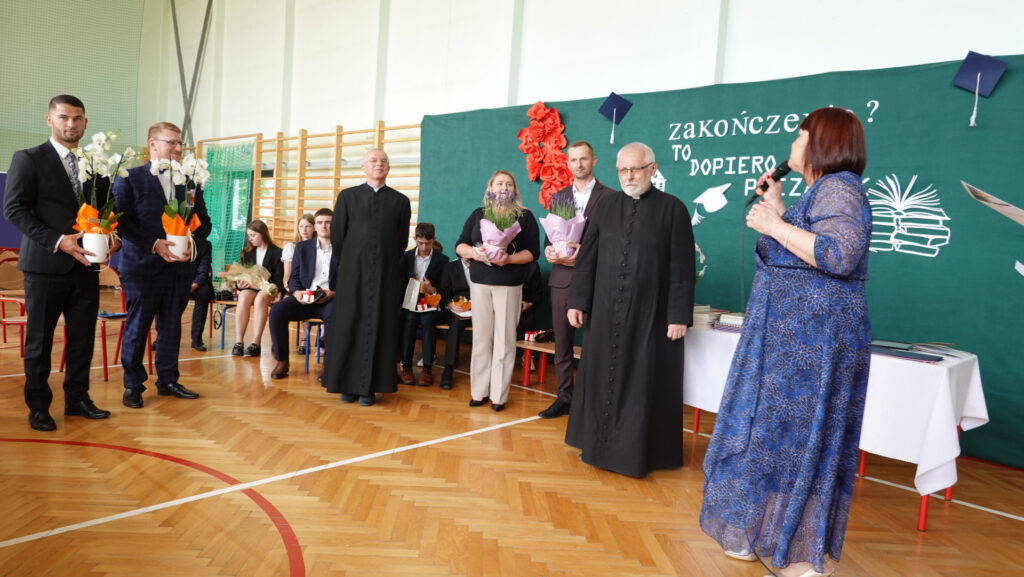 Księdza Piotra Posilińskiego oraz Księdza Jacka Kupca którzy po latach posługi przechodzą na emeryturę. Ich obecność i duchowe wsparcie były nieodłącznym elementem życia szkolnego, a ich odejście wywołało wiele wzruszeń i słów wdzięczności.
